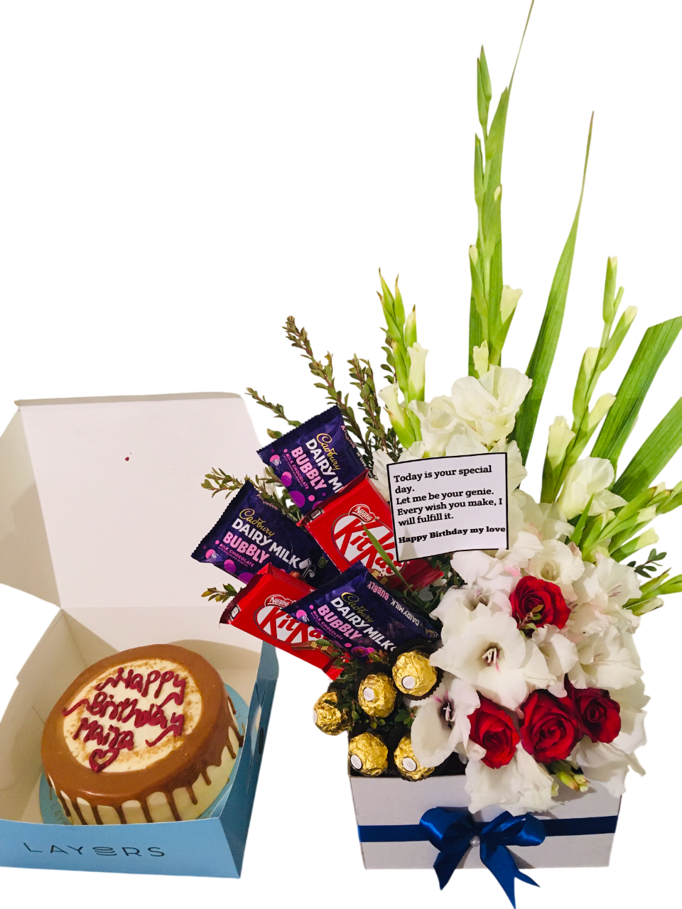 Make birthdays unforgettable with our Luxury Birthday Gift Package, including a fresh flower box, premium chocolates, and a delicious cake. Perfect for romantic surprises, family gifting, and last-minute celebrations.